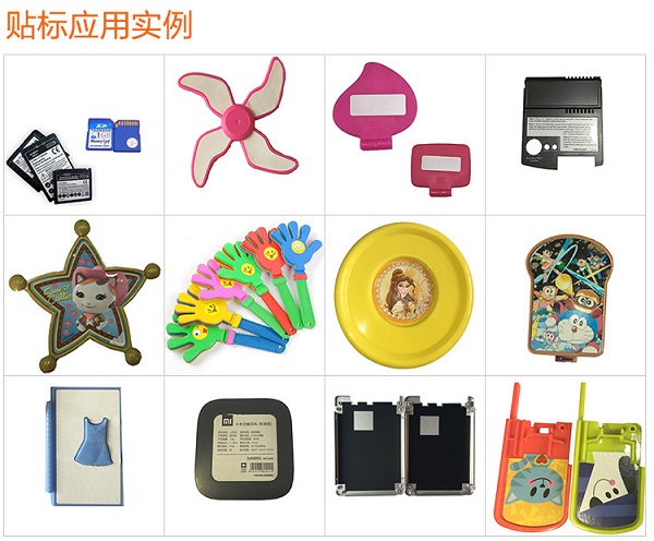 應(yīng)用實例:玩具貼標(biāo)、SD卡貼標(biāo)、充電器貼標(biāo)、卡片貼標(biāo)等。