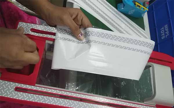以上視頻為例打個比方,人工貼附拿料/貼附/放料/一個產(chǎn)品的節(jié)拍大概是45秒左右。那么一個小時的產(chǎn)能是80pcs/h。要是企業(yè)用自動貼標(biāo)機(jī)貼附,加上員工拿放產(chǎn)品的時間完成一次貼標(biāo)節(jié)拍是7秒左右,一個小時是514左右pcs/h(產(chǎn)品尺寸是長45cm寬15cm),貼標(biāo)機(jī)貼附的速度是人工的3-4倍。按著這樣計算,產(chǎn)能能提高3-5倍左右。節(jié)省大量的人工這個優(yōu)勢恐怕沒有哪個企業(yè)不喜歡的吧?還是以這款玩具塑膠件為例為例,以往傳統(tǒng)人工貼附由于人工重復(fù)性底所以不良率高,每天浪費(fèi)的不干膠標(biāo)簽也是一筆不小的成本,采用自動貼標(biāo)機(jī)貼附不僅可以生產(chǎn)效率,還大大的節(jié)省人工成本及減少不干膠標(biāo)簽的浪費(fèi)。